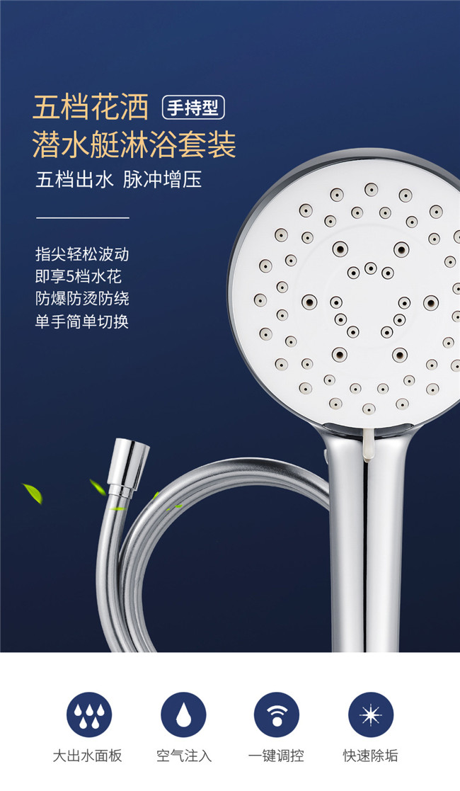 手持淋浴套裝手持家用蓬蓮頭手持花灑噴頭大面板五檔出水模式