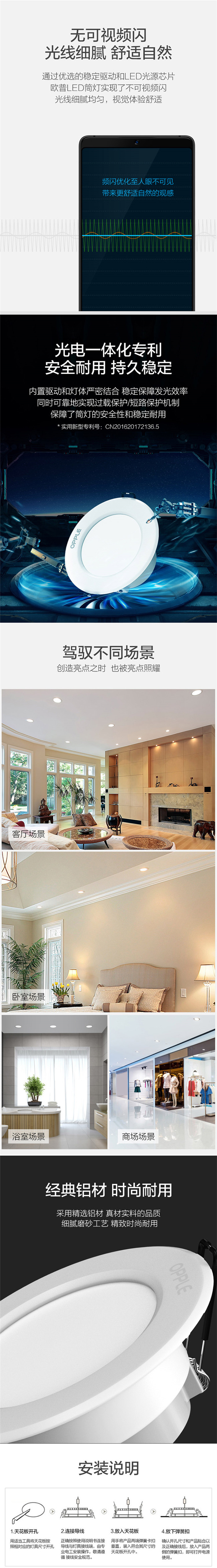 歐普照明(OPPLE)led筒燈3W超薄桶燈客廳吊頂天花燈過(guò)道嵌入式孔燈牛眼燈 白光漆白開孔7-8厘米【鋁材款】