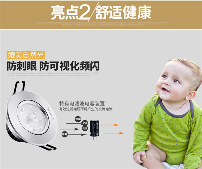 歐普照明LED射燈3W全套天花牛眼嵌入式過道走廊客廳孔燈 象牙白3瓦白光 開孔7-8cm