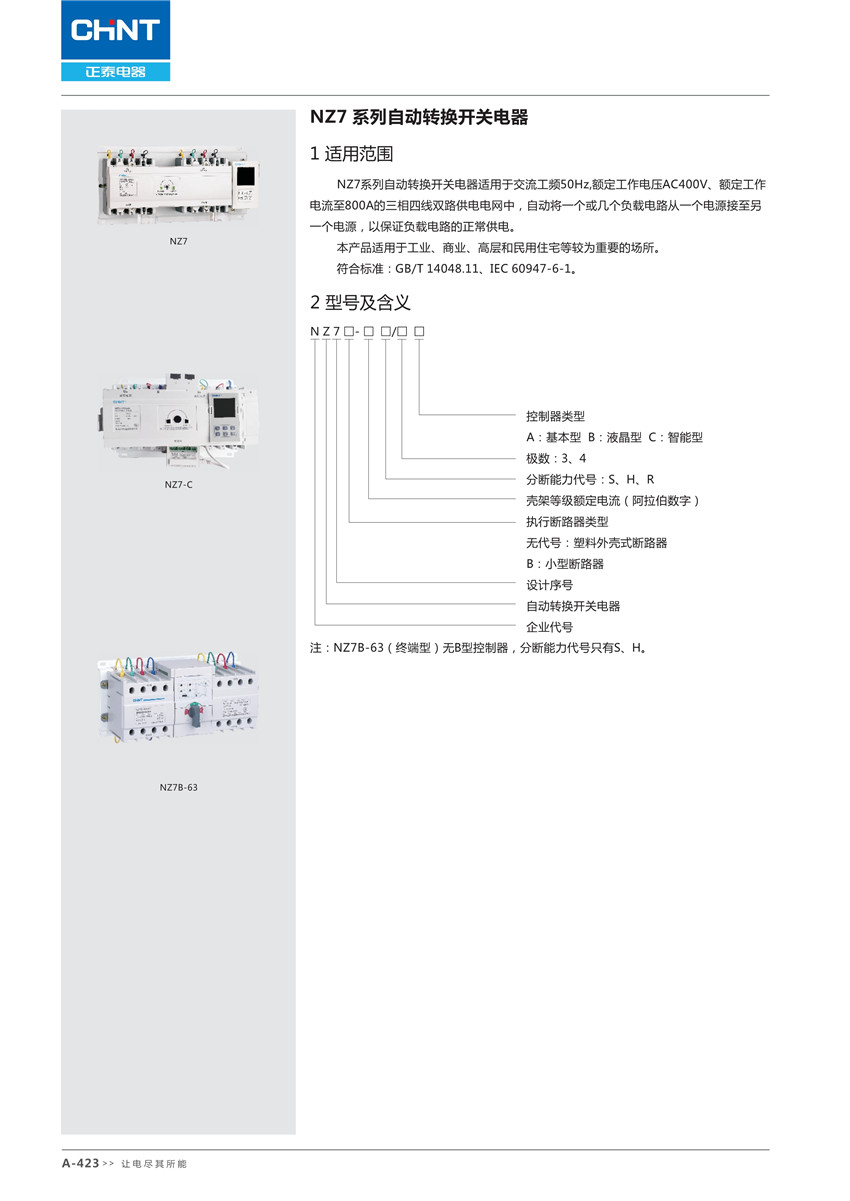NZ7 系列自動(dòng)轉(zhuǎn)換開(kāi)關(guān)