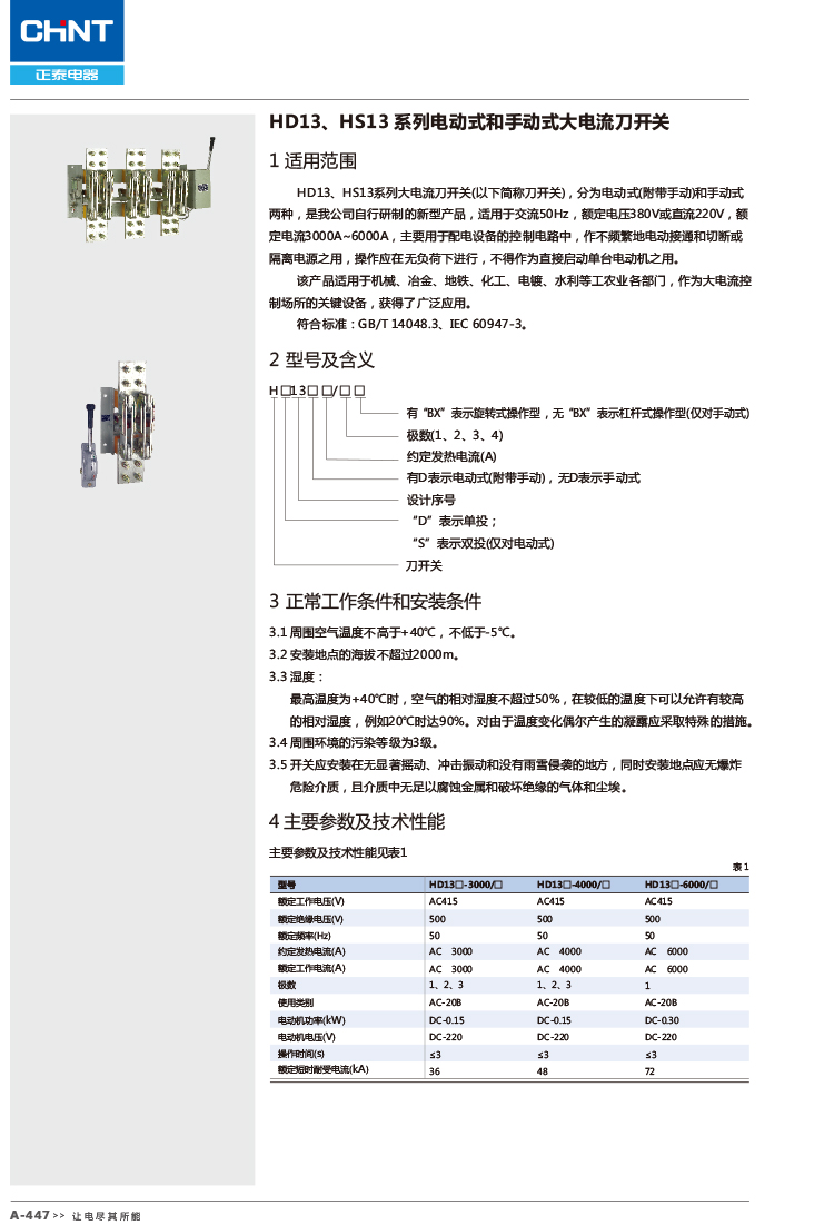 正泰電氣 HD13、HS13 系列電動(dòng)式和手動(dòng)式大電流刀開關(guān)
