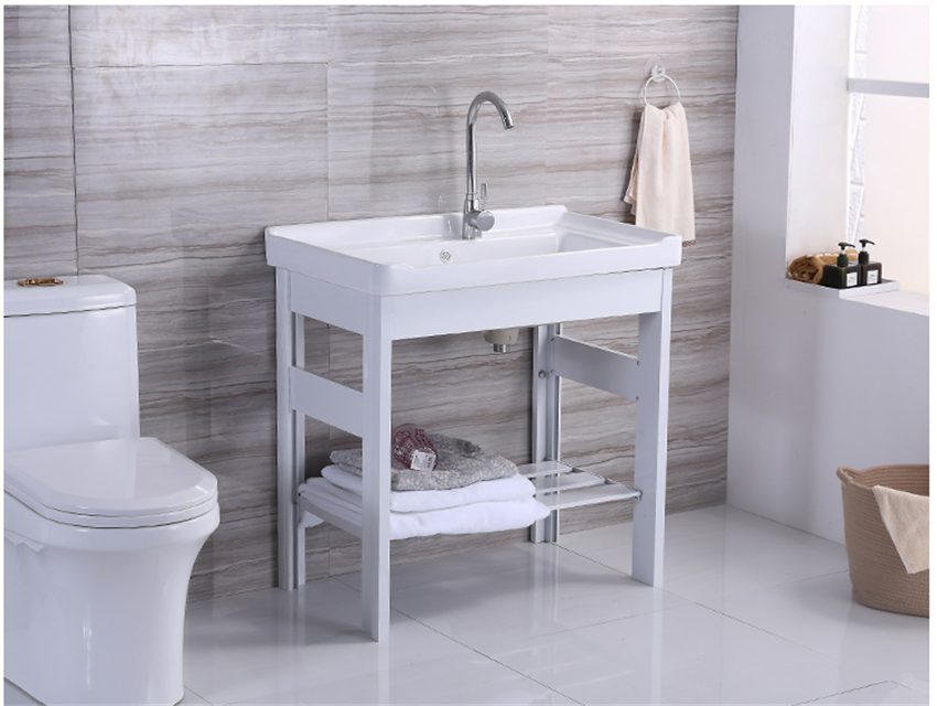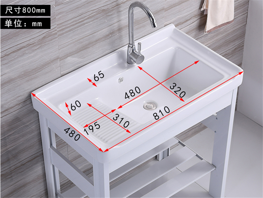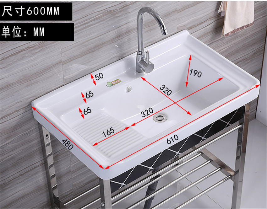 洗手盆帶搓板陽臺(tái)超深洗衣槽陶瓷洗衣盆不銹鋼支架臺(tái)