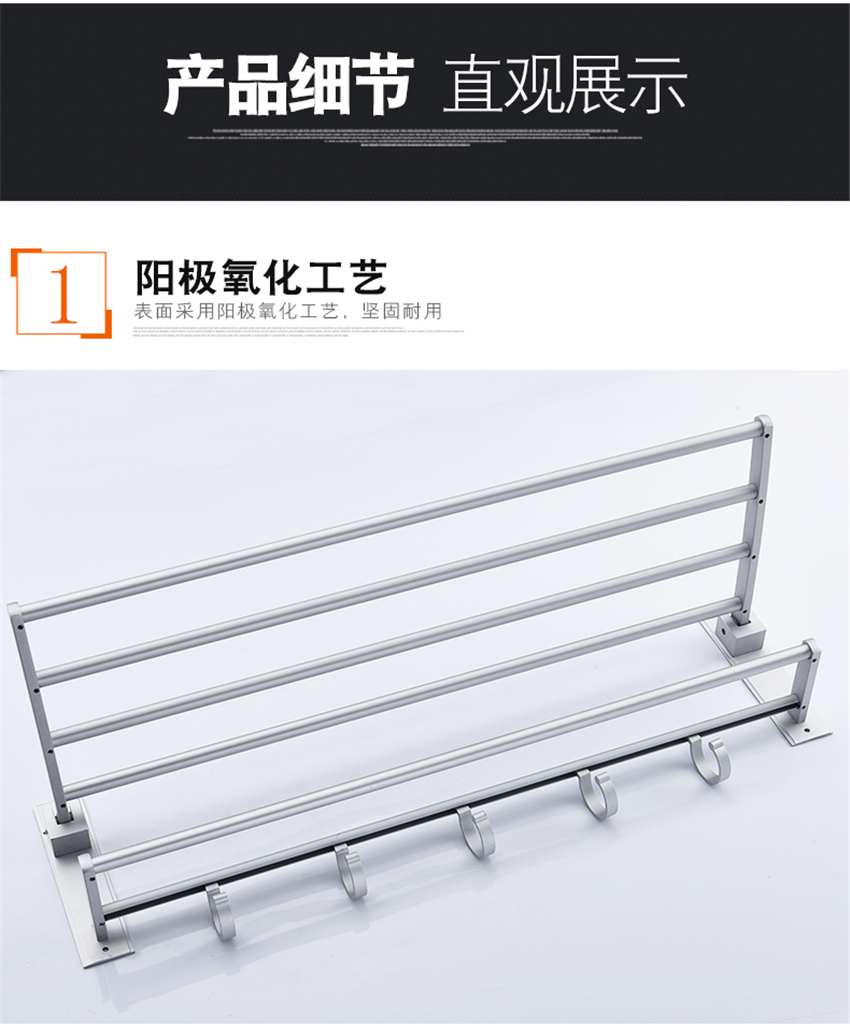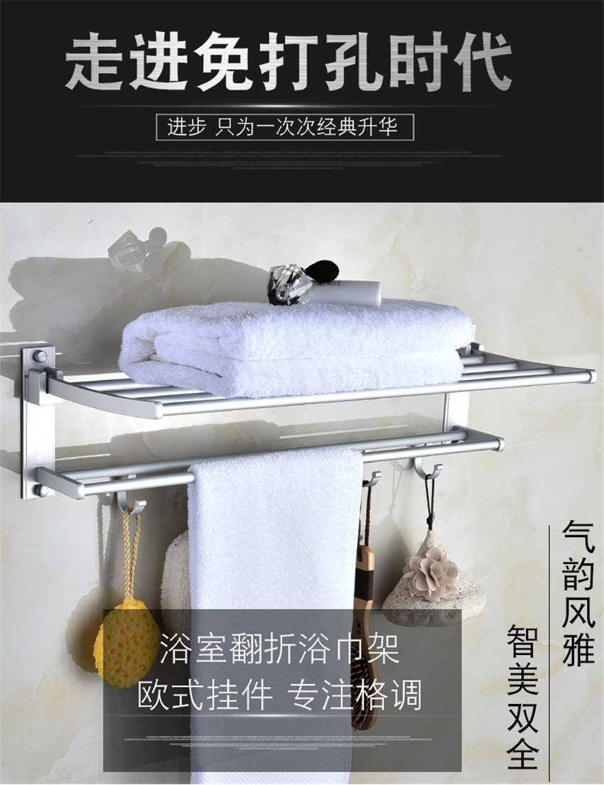 加厚免打孔太空鋁合金浴室折疊浴巾架 衛(wèi)生間毛巾架