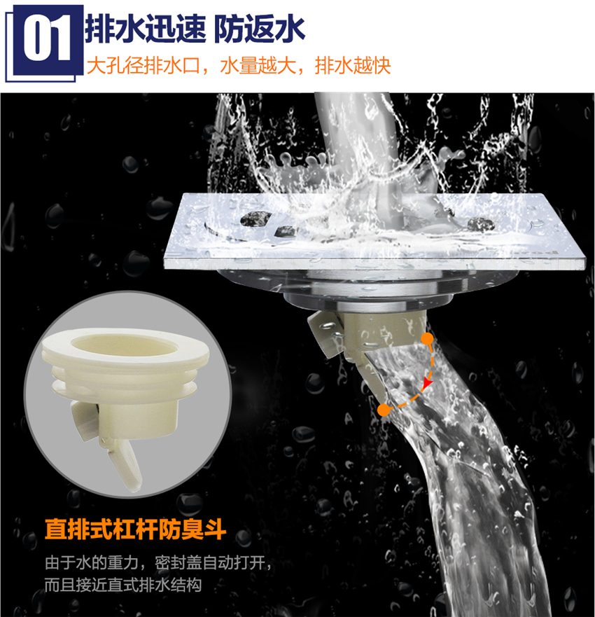 高效防臭地漏 超薄大流量全銅自動密封式地漏