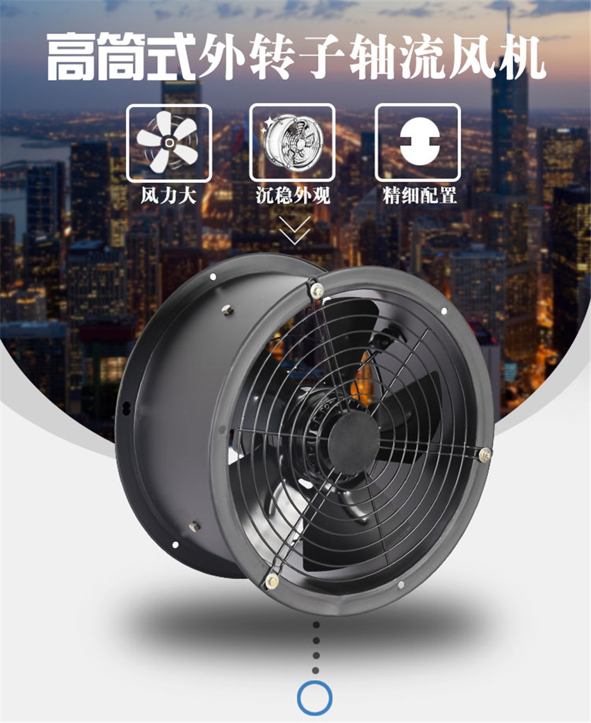 高筒式外轉(zhuǎn)子軸流風機220v靜音高速強力排氣廚房低噪音工業(yè)抽風機