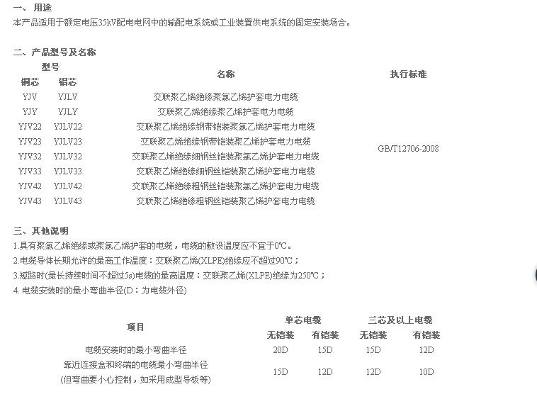 額定電壓1kV和3kV電纜