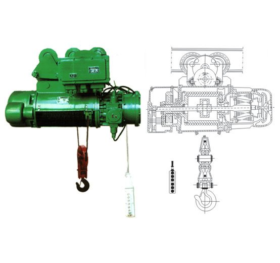 BCD型防爆鋼絲繩電動葫蘆主體可懸掛在工字梁軌道上作直線或曲線運行,或安裝在固定支架上,作為起吊重物之用??梢愿鶕?jù)不同使用要求,同防爆單梁懸掛起重機(jī)或雙梁橋式起重機(jī)配套使用。