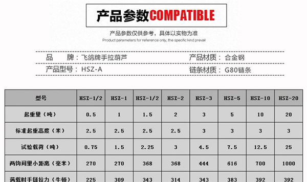 杭州武林飛鴿手拉葫蘆
