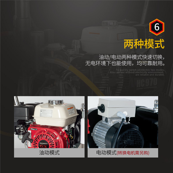 創(chuàng)新的產(chǎn)品特性:可油電兩種模式快速切換。料桶可快速更換,清洗方便,泵體可旋轉(zhuǎn)折疊設(shè)計及推車設(shè)計都更便于運輸
