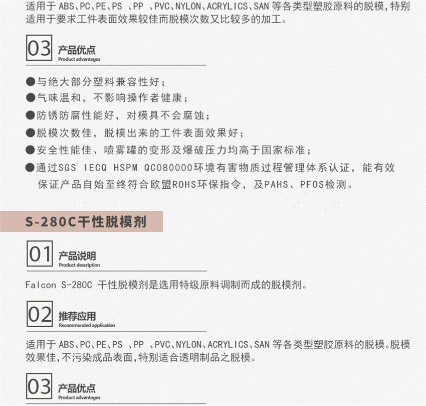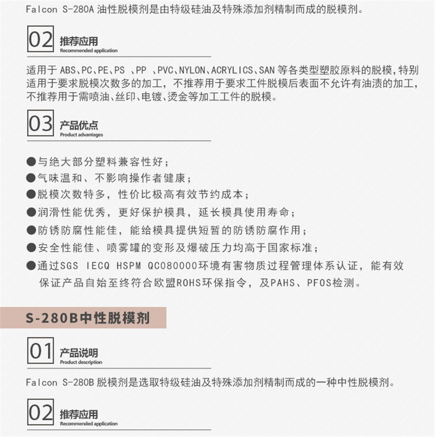 香港鷹牌Falcon S-280脫模劑