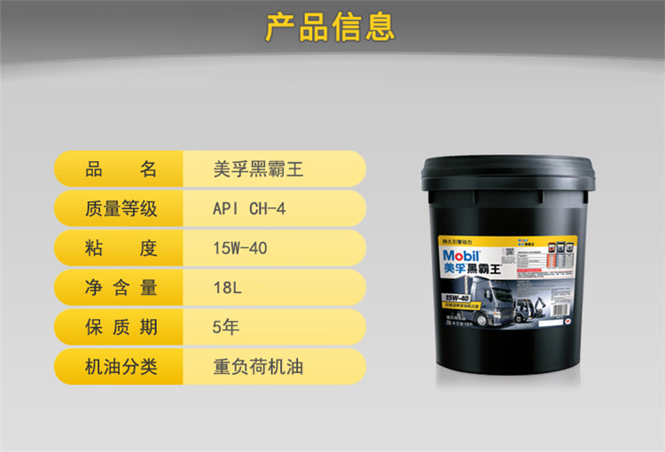 美孚黑霸王柴油車貨車潤滑油15W-40 CH-4 20W-50重卡發(fā)動機(jī)油18L