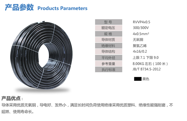 導(dǎo)體采用優(yōu)質(zhì)無氧銅,導(dǎo)電好、發(fā)熱小、滿足長時間負(fù)荷使用絕緣采用優(yōu)質(zhì)塑料、絕緣性能強耐磨、不延燃,使用壽命長