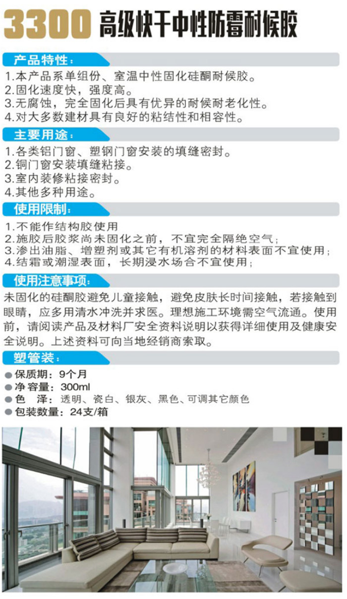 3300高級(jí)快干中性防霉耐候膠