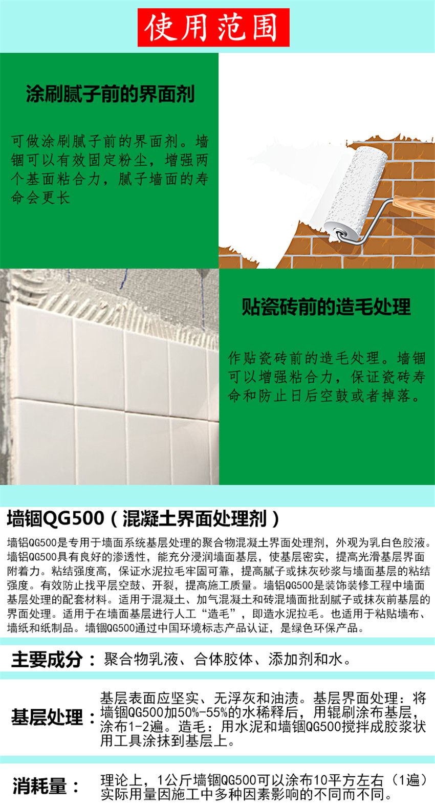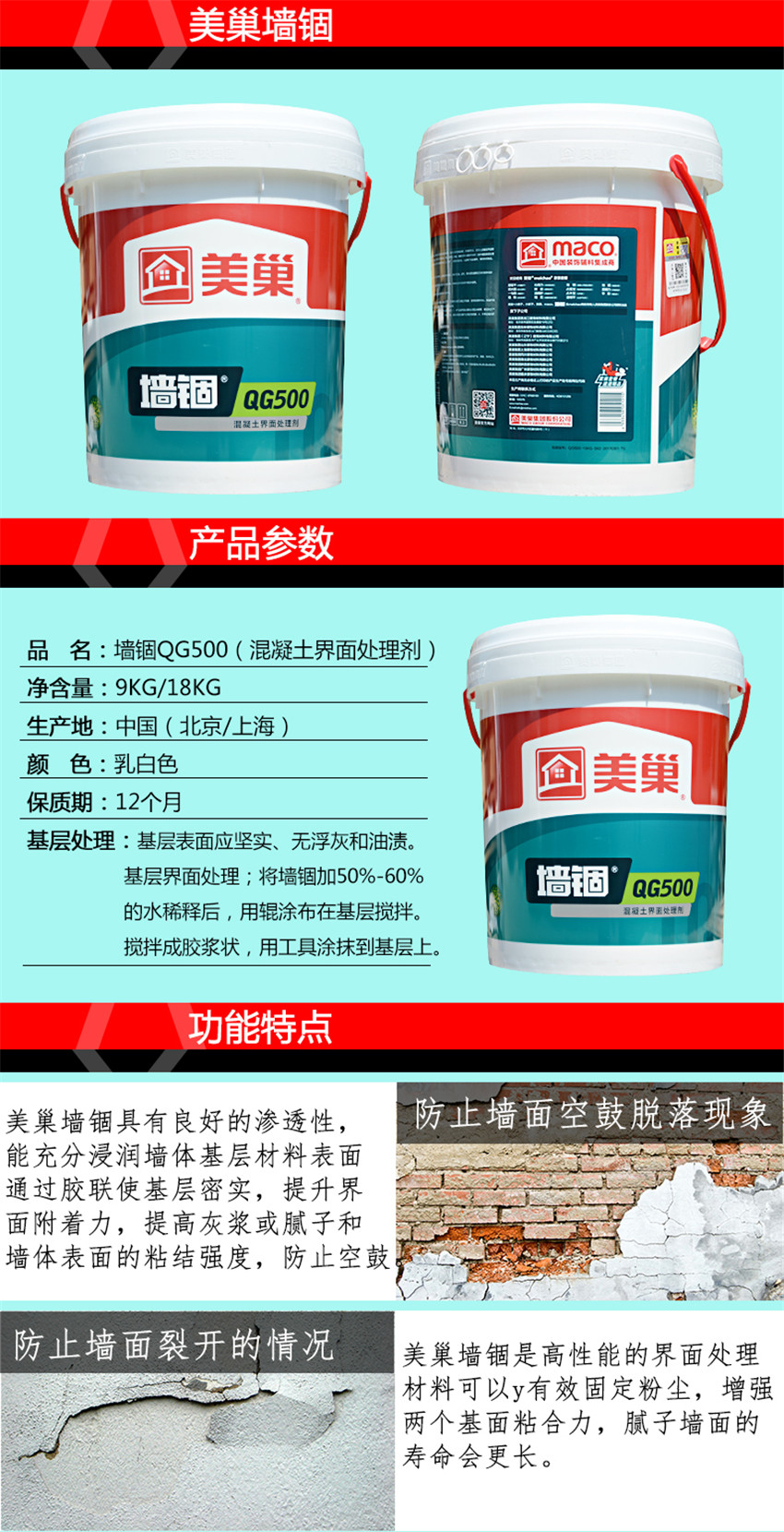 環(huán)保美巢墻錮 混凝土界面劑 增強膩子粉粘合力QG500 十環(huán)認證