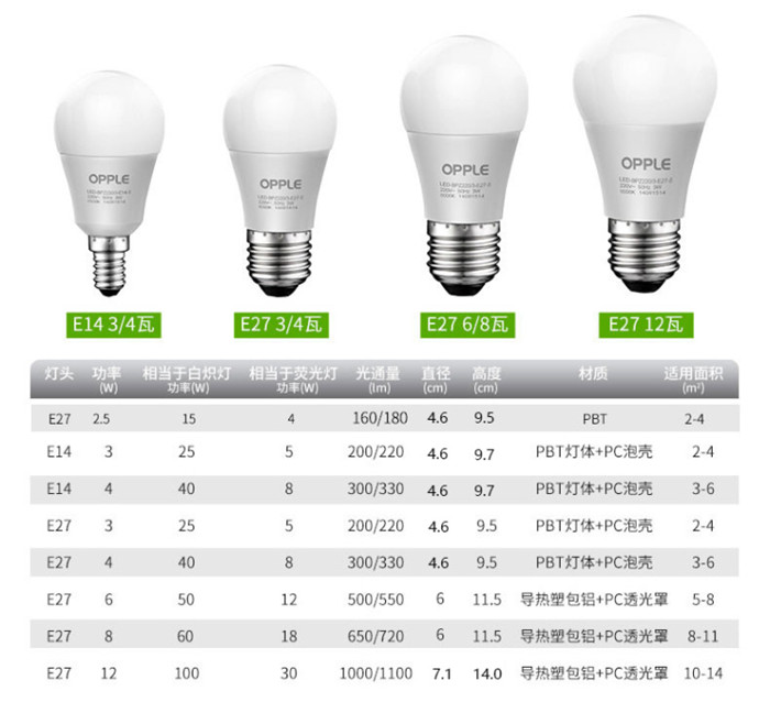 歐普照明(OPPLE) led燈泡節(jié)能大螺口家用商用大功率光源超亮E27球泡E14螺旋-XG