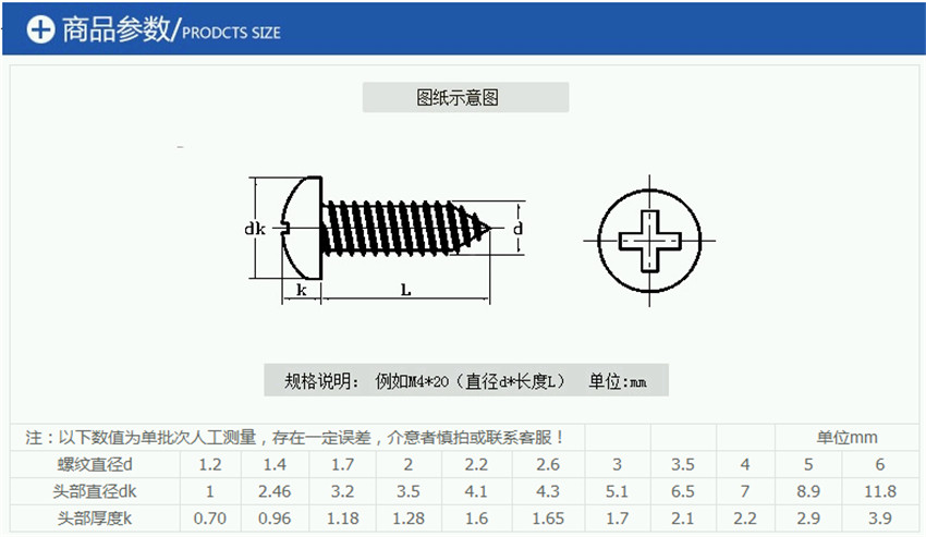 304不銹鋼十字槽盤頭自攻螺絲