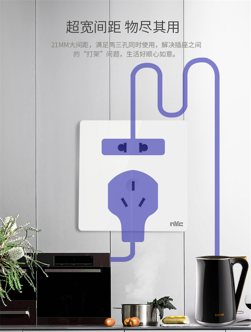 雷士照明家用暗裝墻壁二三插86型開關(guān)插座面板