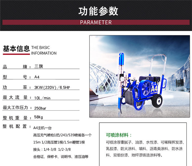 三旗A4高壓無氣噴涂機(jī)